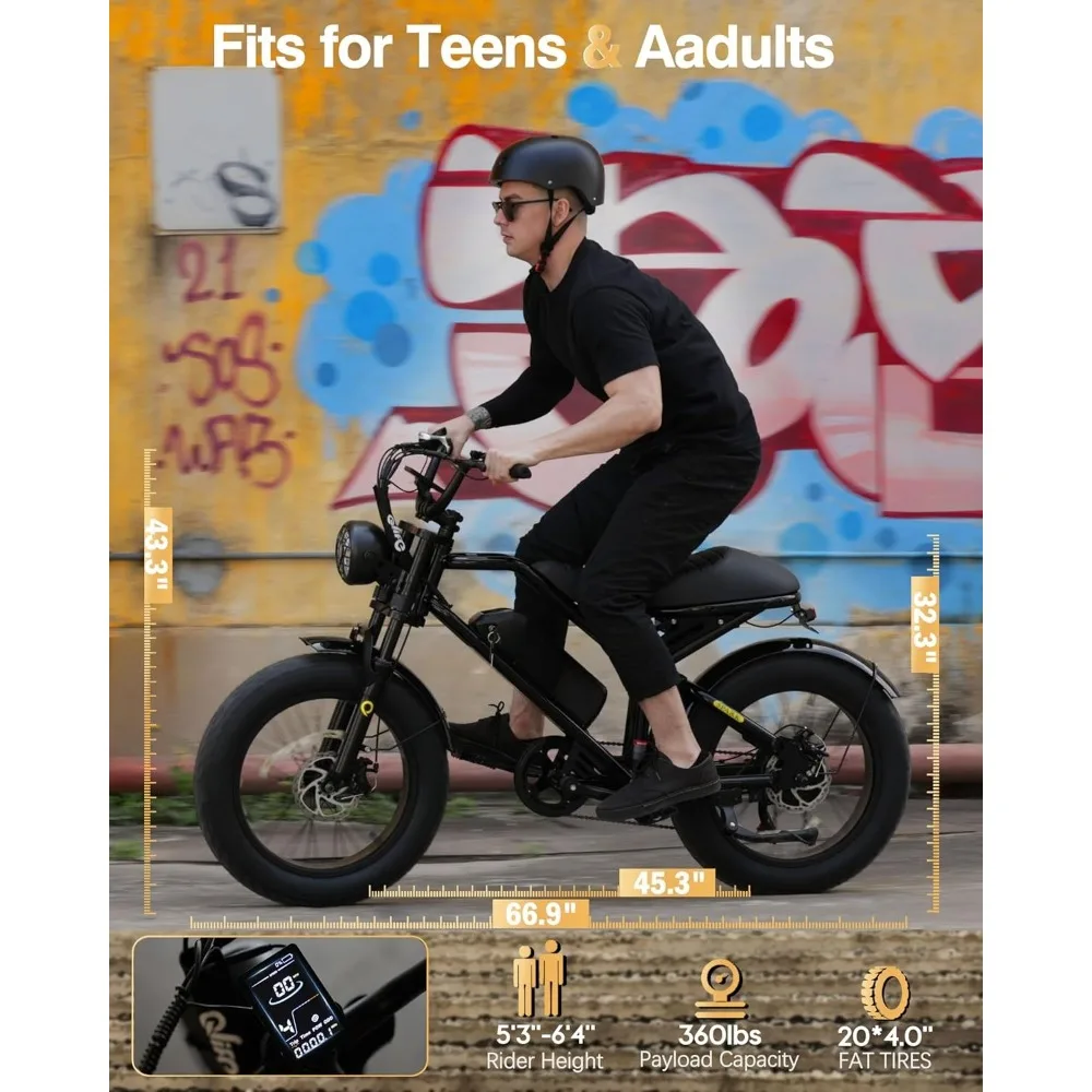 • Extraordinary Off-road Mountain Biking Adventure - This electric dirt bike comes with the motorcycle grade front and rear dual suspensions system. 20''X4.0'' rugged fat tires and 5-level electric assist. providing you with a comfortable and stable off-road riding experience.
